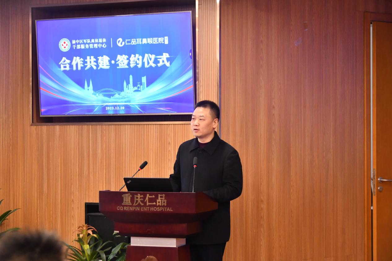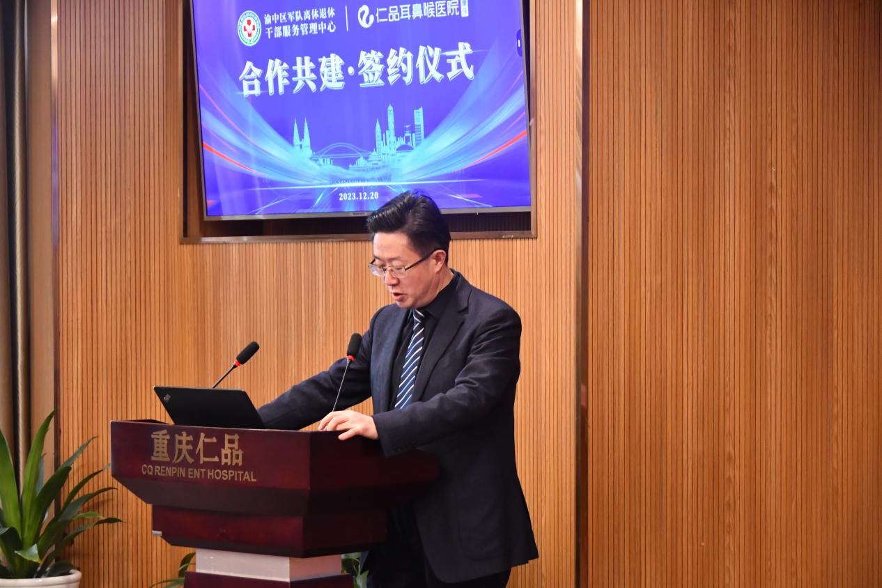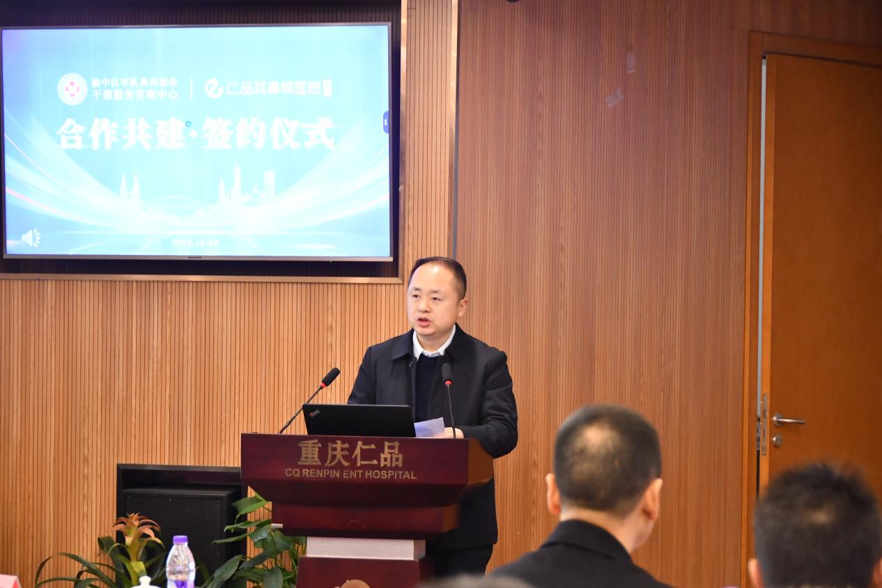 渝中区卫健委王海江副主任代表渝中区卫健委对两家单位顺利缔约表示祝贺!他指出,重庆仁品与渝中区军队离休退休干部服务管理中心共建合作,是双方全面学习贯彻党的二十大精神和习近平总书记重要指示精神的具体举措,希望重庆仁品充分发挥优势,以耳鼻喉头颈外科学科为牵引,提高技术能力,切实为广大军休老干部们提供便捷、温馨、优质的医疗服务。