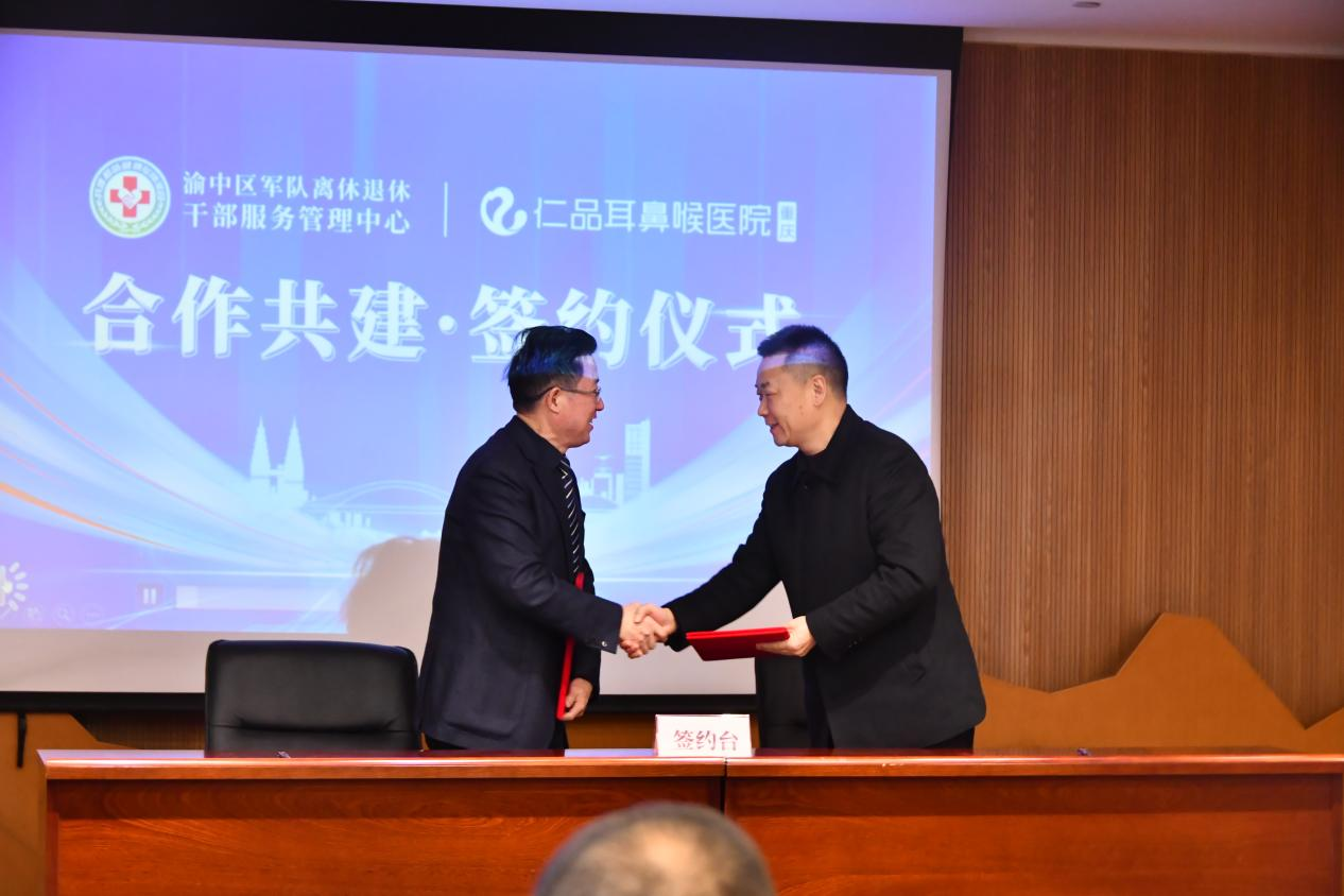 同心齐筑强军梦,军民共建谱华章。为更好地服务渝中区军休老干部,探索建立军民共建耳鼻喉健康服务体系,助推渝中区军休事业融合发展,12月20日下午,渝中区军队离休退休干部服务管理中心与重庆仁品耳鼻喉医院合作共建签约仪式在重庆仁品举行。