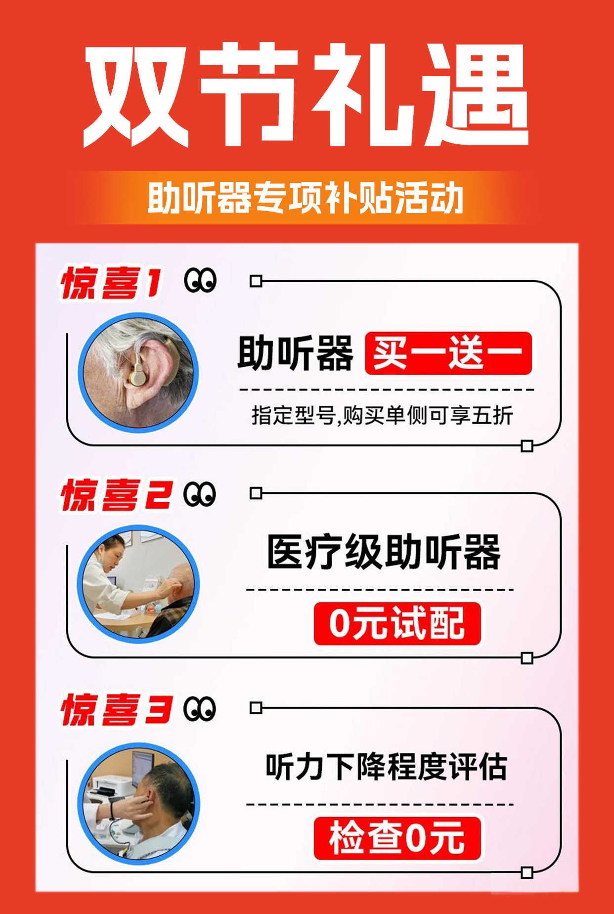 双节同庆,团圆不“失聪”!不管是自己有听力困扰,还是想帮父母、孩子检查听力,都可以趁着这次补贴活动,来仁品医院享受专业服务。让每一声“节日快乐”都清晰入耳,让每一段团圆时光都“声”入人心!