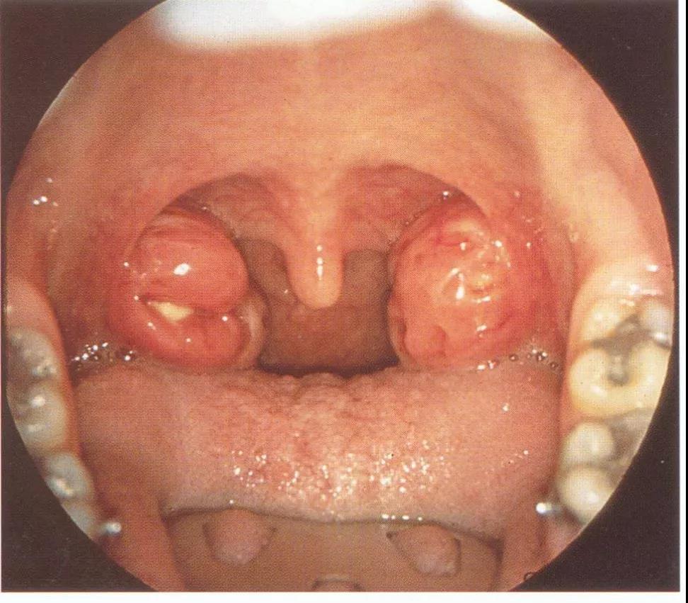 扁桃体脓肿:为扁桃体本身的脓肿,可在扁桃体内抽出脓液,患者扁桃体肿大,扁桃体上隐窝中可见脓液流出,患者多无张口困难。