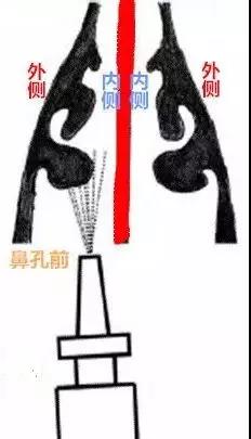 用右手将鼻喷剂的喷头放进左侧鼻孔前,喷头方向朝向自己外眼角方向,保持瓶子基本竖直,不要过度倾斜,反之亦然。由于鼻腔的内侧是鼻中隔,所以不要将喷头朝向内侧,以避免喷在鼻中隔上。外侧方向的黏膜血管丰富,吸收更好,刺激性最小。