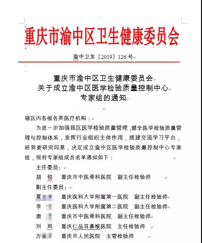 为进一步加强我区医学检验质量管理,健全医学检验质量管理与控制体系,发挥行业组织主体作用,搭建交流学习平台,经重庆市渝中区卫生健康委员会研究同意,渝中区医学检验质量控制中心专家组在此背景下应运而生。