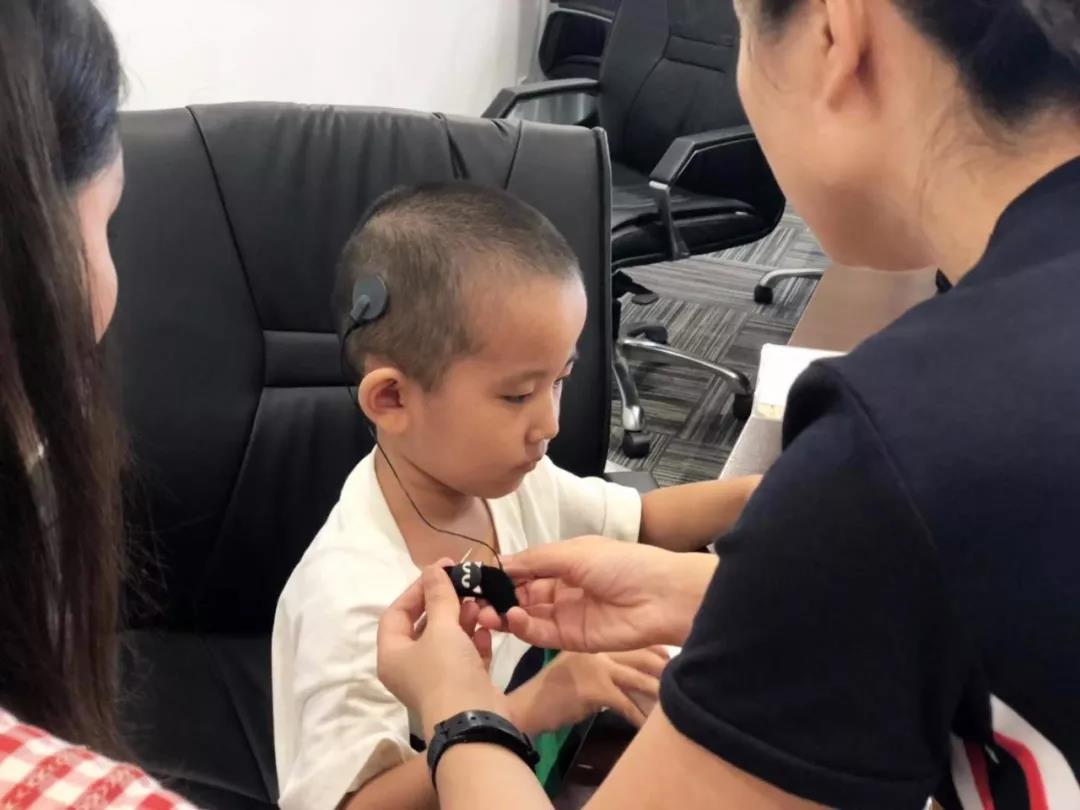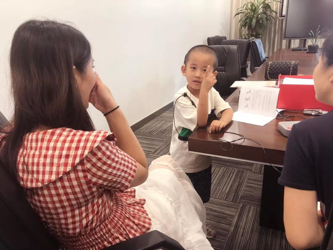 经过近一个月的恢复。7月22日一早,刘菲菲带着豪豪专程从贵州赶来,人工耳蜗调试人员顺利为豪豪进行“体外语言处理器”系统的反复调试并进行现场造音测试,如敲击茶杯、鼓掌、拍打桌面、喊话等。“豪豪,能听到吗?听到举起你的右手。”“豪豪,我是谁?”“妈妈。”豪豪的每一个回应,都能看到刘菲菲满脸幸福地笑容。