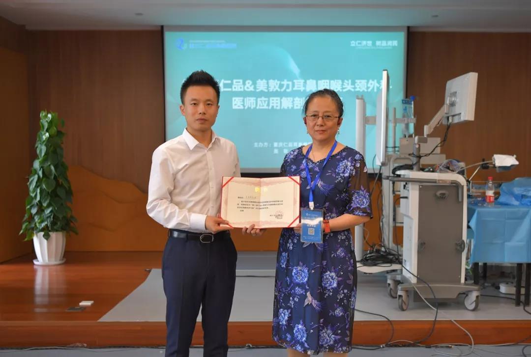 重庆仁品耳鼻喉医院副院长、总经济师陈国铠致欢迎词并为吴彦桥教授颁发了示教聘书。