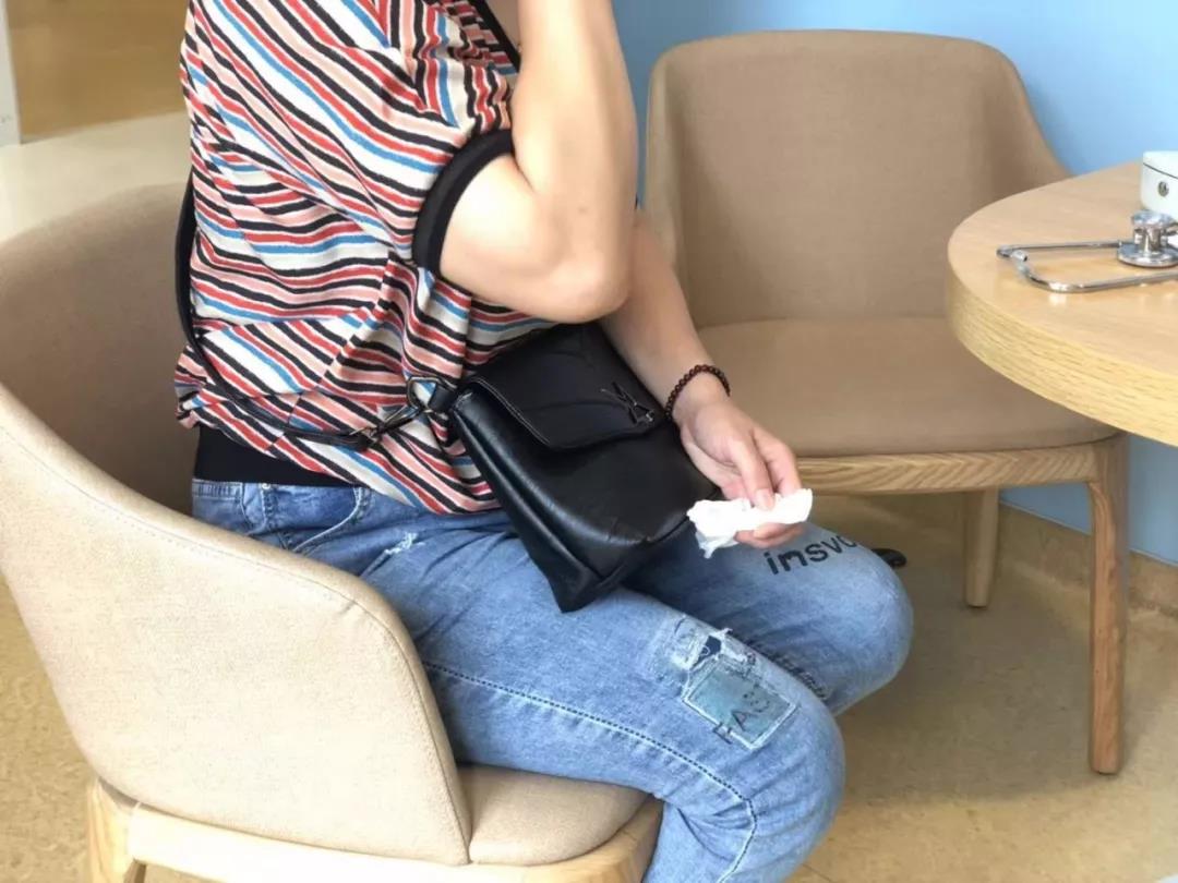 治疗中的陈女士手上仍一直拿着纸巾