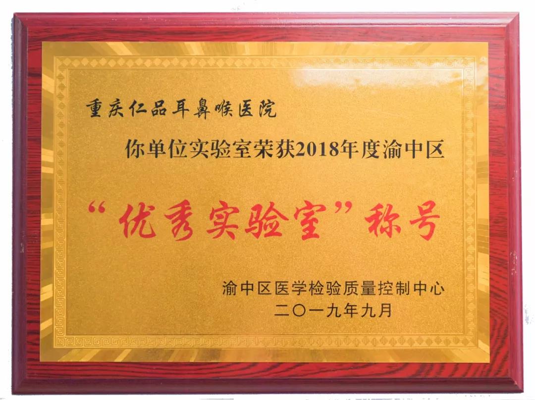 重庆仁品耳鼻喉医院被评为“优秀实验室”