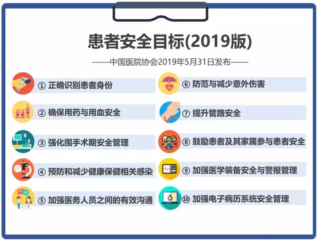 据悉,患者安全目标是倡导和推动患者安全活动最有效的方式之一,是绝大多数国家的通行做法,中国医院协会从2006年起连续发布《患者安全目标》。从2019年9月17日起,每年9月17日被命名为世界患者安全日。