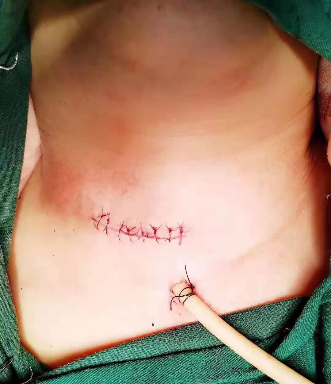 据该男子讲,今年5月底,母亲无意发现自己颈部偏右侧有一个小包块,以为是揪痧后引起的肿大,吃了中药调理,这半个月来,包块开始增大,用手按压有轻度疼痛,一家人慌了,决定到医院检查,被诊断为“甲状腺腺瘤伴出血”。
