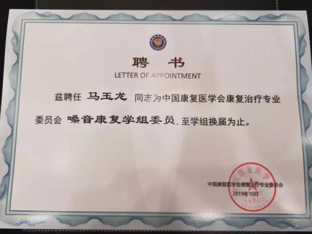 我院马玉龙当选为中国康复医学会“嗓音康复学